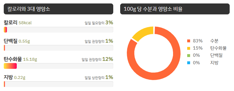 포도 100g의 3대 영양소 함량과 구성 비율은 다음과 같습니다.