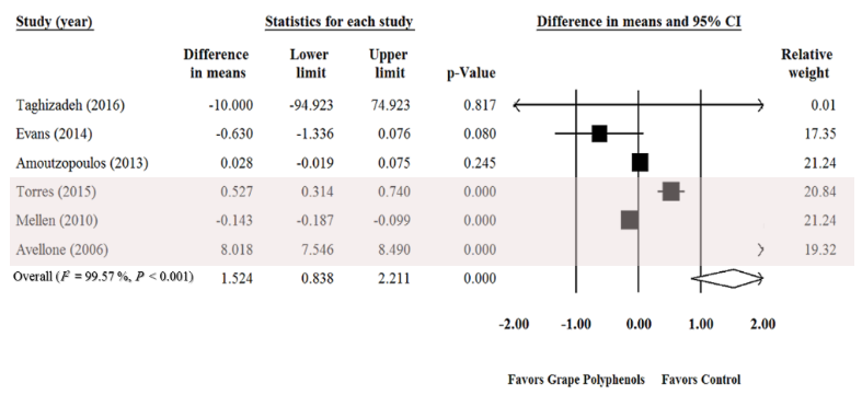 포도 및 포도 제품(주스, 추출물) 섭취는 총항산화능력(TAC), SOD, ORAC 등의 항산화 지표를 유의하게 증가시키는 것으로 나타났습니다.