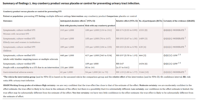 크랜베리 제품이 UTI 발생률을 유의하게 감소시키는 경향이 보고되었다는 논문 내용이 있습니다.